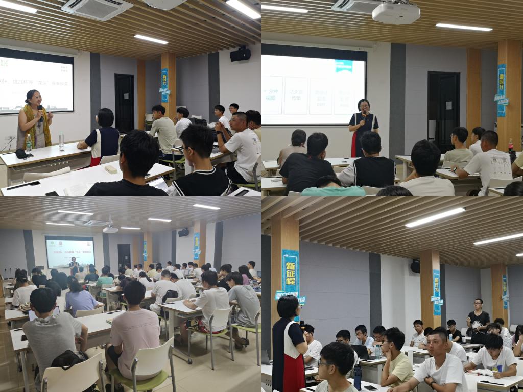 劳丹首先讲述了两大“龙头”赛事的来源和发展历程。她强调,“互联网+”和挑战杯赛事在老员工科技自主创新能力提升、创新创业素质培养和德智体美劳综合能力成长等方面具有重要意义和推动作用,赛事的开展有利于促进老员工的个人全面发展,有利于增强老员工为国家社会奋斗贡献的能力。她强调,做项目最重要的是有态度、有想法、有实践,并鼓励同学们发挥聪明才智,积极参与项目,学赛结合、以赛促学。